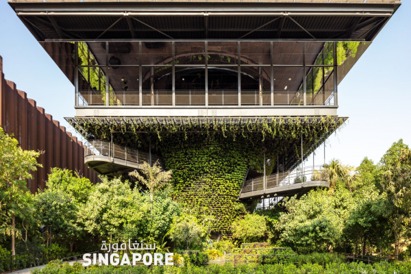 The Singapore Pavilion for Expo 2020 Dubai minh hoạ khát vọng của thành phố hướng tới một tương lai bền vững, kết hợp giữa kiến trúc, thiên nhiên, công nghệ và văn hóa. Với tiêu đề “Nature.Nurture.Future”, toà nhà được thiết kế bởi WOHA Architects và thiết kế cảnh quan Salad Dressing giới thiệu một mẫu môi trường đô thị trong tương lai của Singapore.