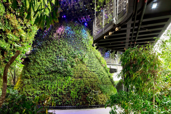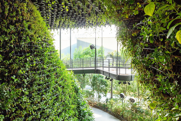 Với hơn 170 loại thực vật từ các môi trường sống đa dạng ở Singapore và được đặt trong các lớp cây xanh khác nhau, từ vườn treo đến tường thẳng đứng, nhà triển lãm tạo ra một không gian xanh ba chiều, đưa du khách đi qua các khu rừng mưa nhiệt đới, khu vực ngập mặn và suối rừng.