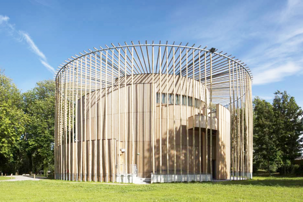 Nhà hát Hardelot là sự kết hợp hoàn hảo giữa yếu tố truyền thống và phong cách hiện đại. Tổng thể công trình gợi nhớ đến những ngôi đền Nhật Bản và kiến trúc bằng gỗ châu Âu thời Trung cổ. Đây cũng là tòa nhà đầu tiên ở Pháp sử dụng tre làm vật liệu ốp tường.
