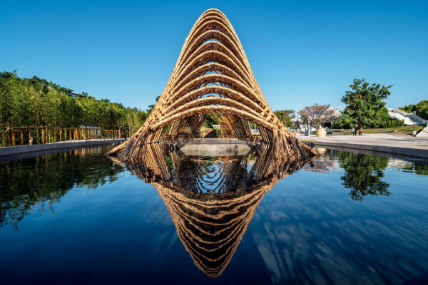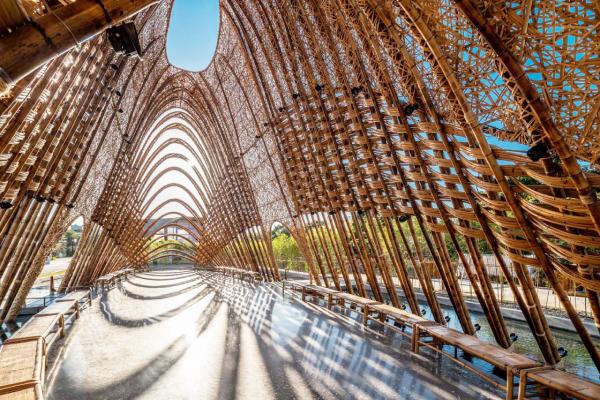Bamboo Pavilion có diện tích 1.570 m2 do Zuo Studio thiết kế, lấy cảm hứng từ dãy núi trung tâm của Đài Loan (Trung Quốc). Công trình được làm bằng tre Moso và tre Makino, những vật liệu xanh nổi tiếng của Đài Trung, tạo cho du khách cảm giác như đang đi bộ qua một khu rừng tre. Tạp chí Dezeen nhận xét Bamboo Pavilion là “không gian làm thay đổi nhận thức và tầm nhìn của con người về giá trị, tính linh hoạt của tre trong xây dựng”.